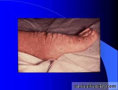 3-Dermopathy (0.5-4.3%) localized myxedema, usually pretibial especially common with severe ophthalmopathy