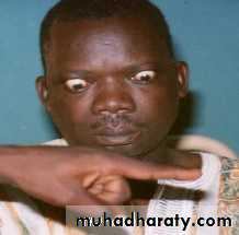 2) Lid retraction: Lid retraction due to exophalmos (protrusion)