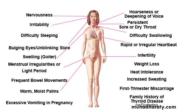 Neuromuscular: Anxiety, irritability, emotional lability, psyachosis, Tremor, Muscle weakness, Periodic paralysis, Hyper-reflexia, sustained clonus, Proximal myopathyBulbar myopathy