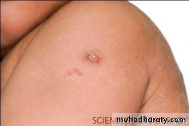 -fever,pain.axillary lymphadenopathy,ulcer, lupus vulgaris,kelloid reaction.