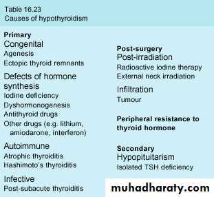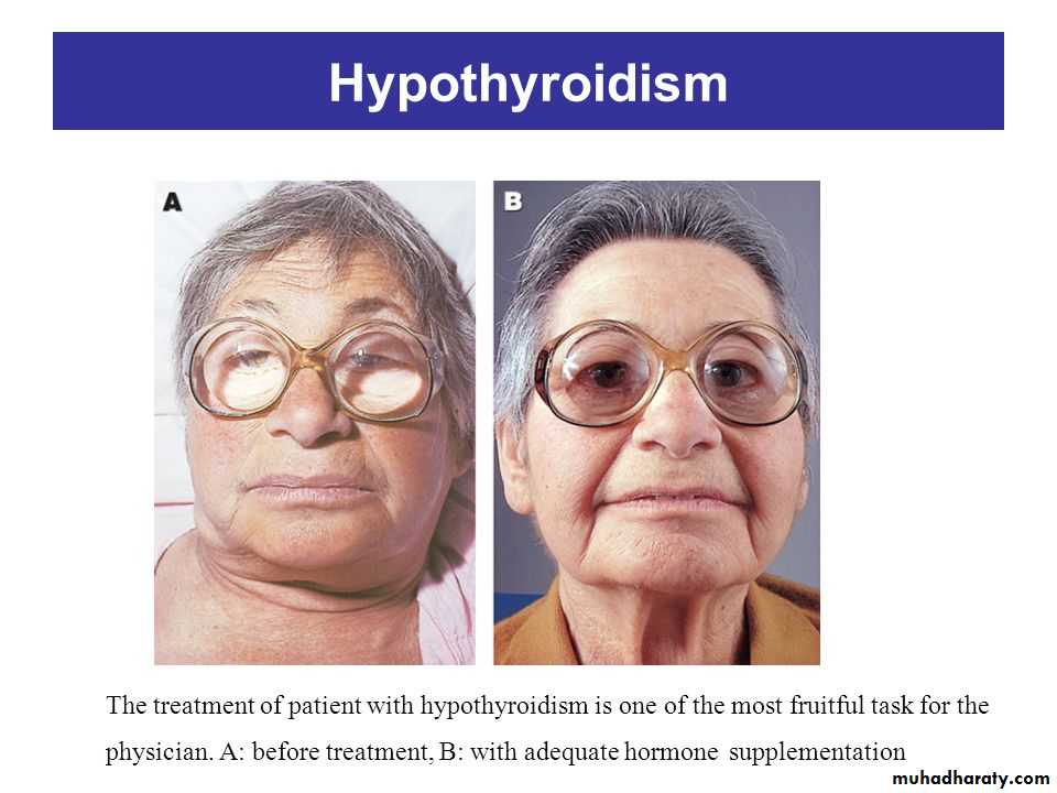 Failure of the thyroid gland to produce adequate amounts of hormone.1-Primary.2-Secondary – decreased secretion of TSH from pituitary.Thyroid gland normally releases thyroxine (T4) daily and small amounts of T3.
