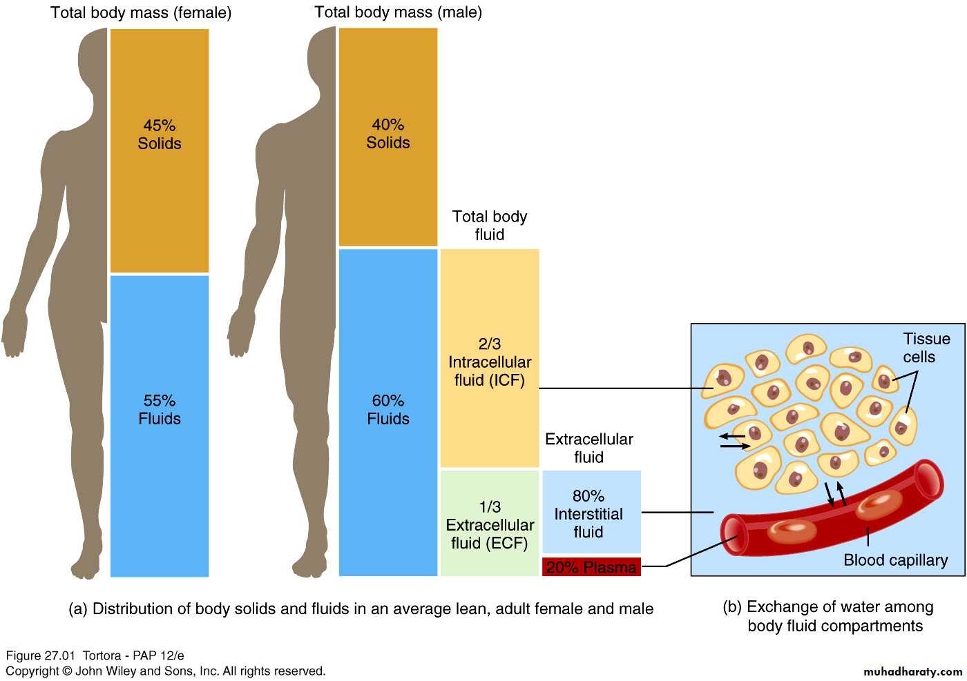 In lean adults, body fluids constitute 55% of female and 60% of male total body massIntracellular fluid (ICF) :