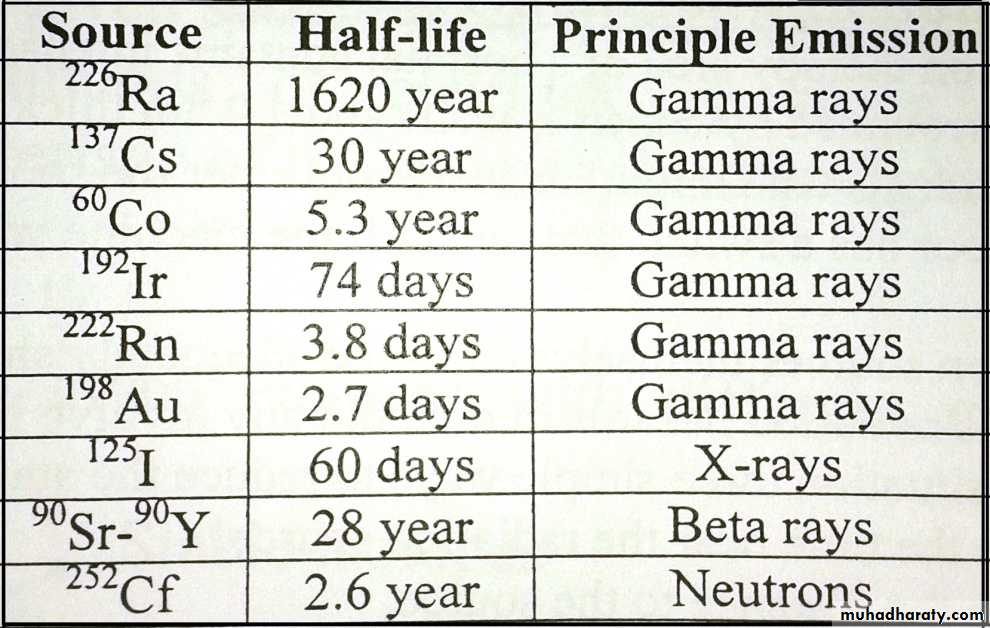 The following table show the radinuclide source that sometimes used for brachytherap:
