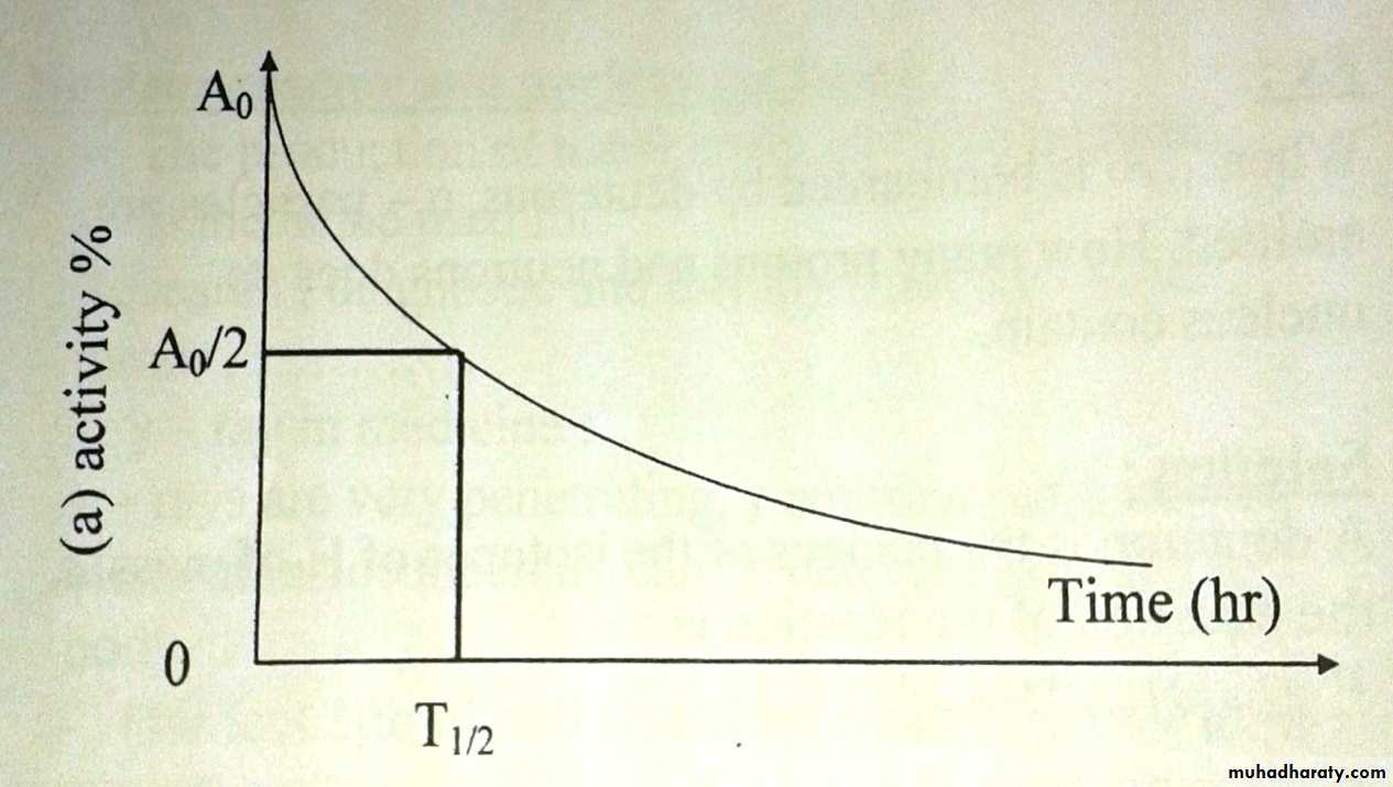 T1/2 : the time needed for half of the radioactive nuclei to decayThe basic equation describing radioactive decay is: A= A0e-λt
