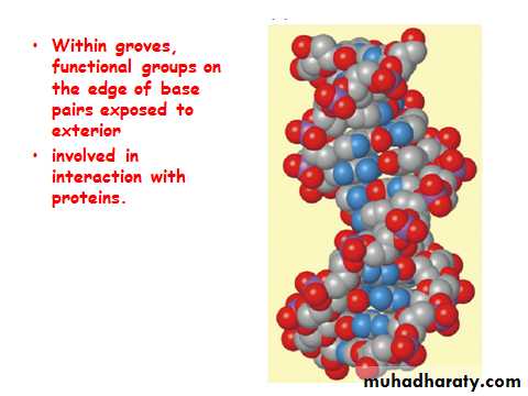 Distance between the 2 sugar-phosphate backbones is always the same, give DNA molecule a regular shape.Plane of bases are oriented perpendicular to backbone