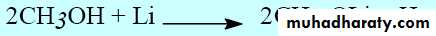 Alcohols, like water, can show either acidic or basic properties at the -OH group. They are generally slightly weaker acids than water, but they are still able to react with strong bases such as sodium hydride or reactive metals such as sodium, lithium, etc. The salts that result are called alkoxides with the general formula RO-M+.