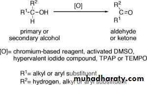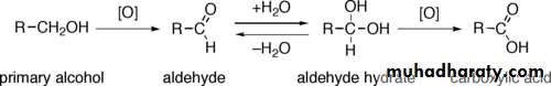 Primary alcohols (R-CH2-OH) can be oxidized either to aldehydes (R-CHO) or to carboxylic acids (R-CO2H).The oxidation of secondary alcohols (R1R²CH-OH) normally terminates at the ketone (R1R²C=O) stage.