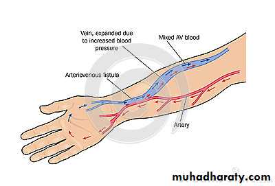 • Aneurismal dilatation leading to what is called an "aneurismal fistula"