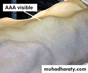 O/E: palpable, expansile mass, with or without thrill