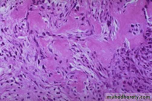 * Formation of osteoid tissue by malignant mesenchymal cell is diagnostic (osteoblastic type ).
