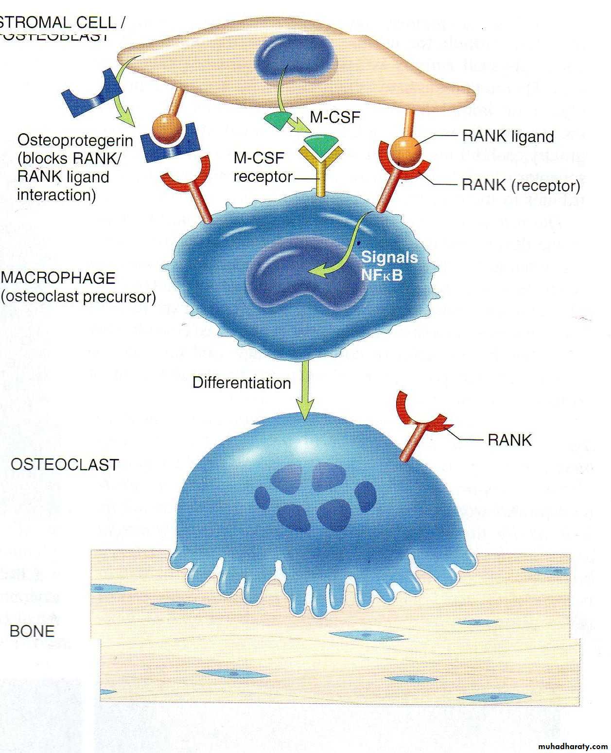 1-it inhibit the production of osteoprotegrin so it stimulate the formation of osteoclast from macrophage .2- it increase the level of IL-1 & TNF both stimulate the formation of RANK ligand & macrophage CSF both stimulate the formation of osteoclast .