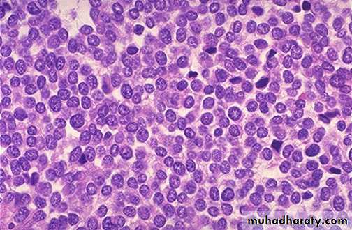 Mic : it consist of sheets of blue cells with uniform nucleus & scanty cytoplasm & it should differentiate from other blue cell like NHL , neuroblastoma