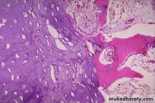 benign tumor compose of hyaline cartilage , occur at any age ,usually single seen in small bone , may be multiple as in Osler disease & Maffucci syndrome , both show cellular atypia .c- Chondrosarcoma :