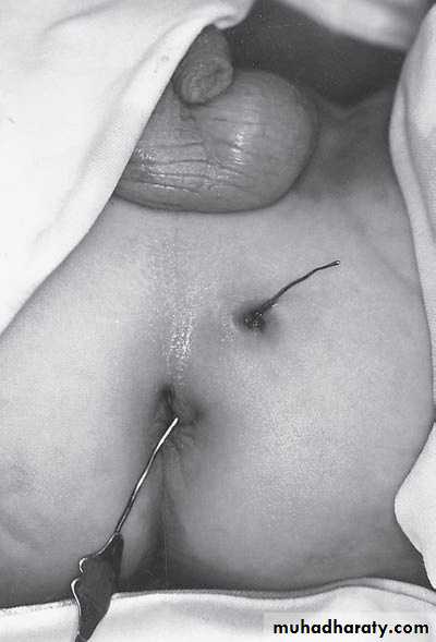 -Rx;-probing –catheter and see where contrast appear in bladder or intestine