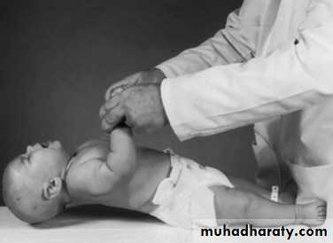 • Normal AbnormalThe examiner places both hands in the infant's axillae and, without grasping the thorax, lifts straight up
