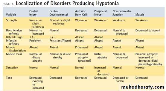 peripheral nervous system . Hence hypotonia is a commonsymptom of neurological dysfunction and occurs in diseases