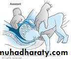 Full abduction of the legs places the lateral surface of the thighs against the examining table, and the arms lie either extended at the sides of the body or flexed at the elbow with the hands beside the head.
