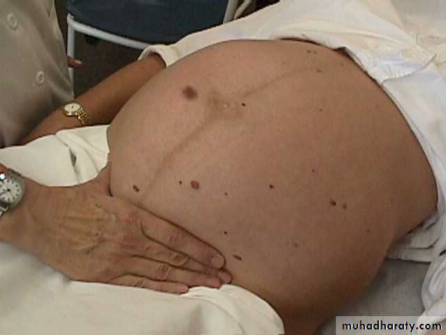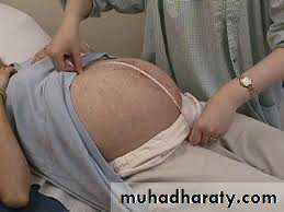Abdominal examination: in semi-recumbent position or a pillow below one buttock to move the wt of uterus to Rt or Lt , cover the legs with sheets , ensure that the women is in comfortable position , chaperone should be present.