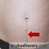 Inspection:- shape & symmetry of the uterus, any scar e,g pfanennstiel scar, linea nigra &stria gravidorum