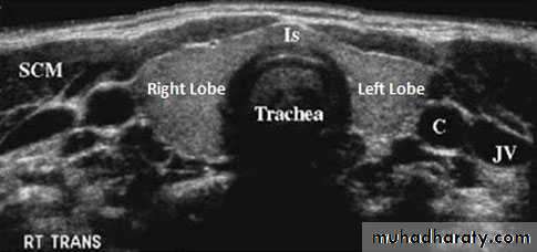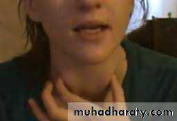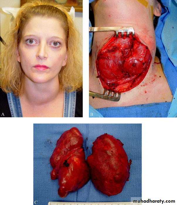 • Move with swallowing .• Nodules are hard gritty fixed to the surrounding structures such as to the trachea strap muscles are more likely to be malignant.