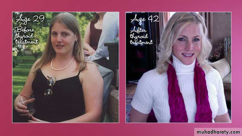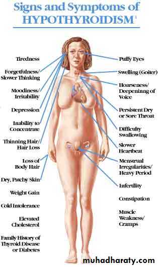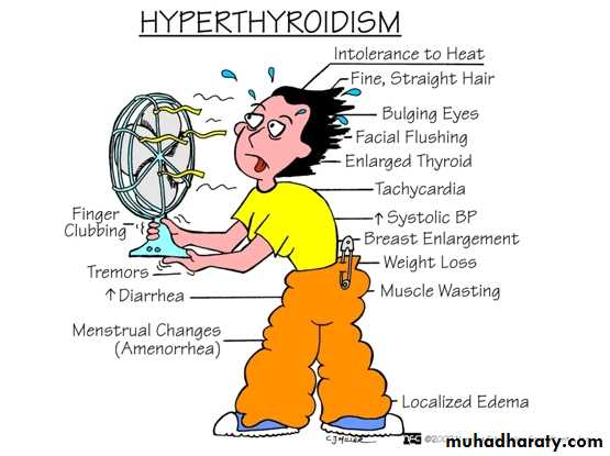 ( diarrhea in hyperthyroidism & constipation in hypothyroidism).• It increase the bone & protein turn over & speed of muscle contraction & relaxation. ( bone resorption and decrease in bone calcium density , muscle wasting).