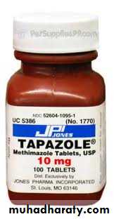 • If thyroid failure is prominent thyroxine is given until the function is recovered.