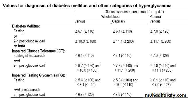 Values of Diagnosis of Diabetes Mellitus