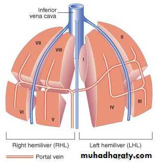It is divided into right and left hemilivers based on the hepatic blood supply.The right and left hemilivers are further divided into a total of eight segments in accordance with subdivisions of the hepatic and portal veins.