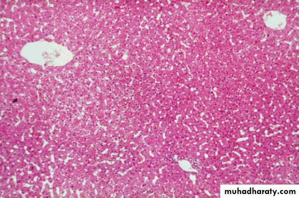 8Normal adult liver section showing the radiating plates of liver cells between the portal tracts & central veins