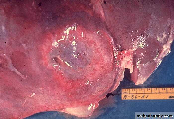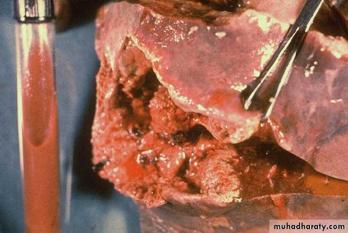 • Laboratory findings due to complications: R pleural effusion (20%), subphrenic abscess, pneumonia, empyema, bronchopleural fistula