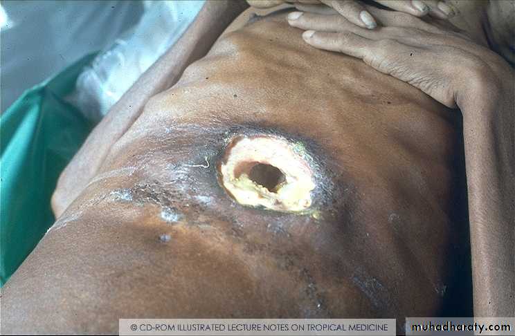 • common in developing countries• usually pyogenic multiple, small abscesses (E. coli, P. vulgaris, Enterobacter aerogenes, anaerobes)