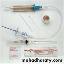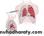 - Aspiration using a small IV catheter in the second intercostal space midclavicular line attached to a three-way stopcock and a large syringe.