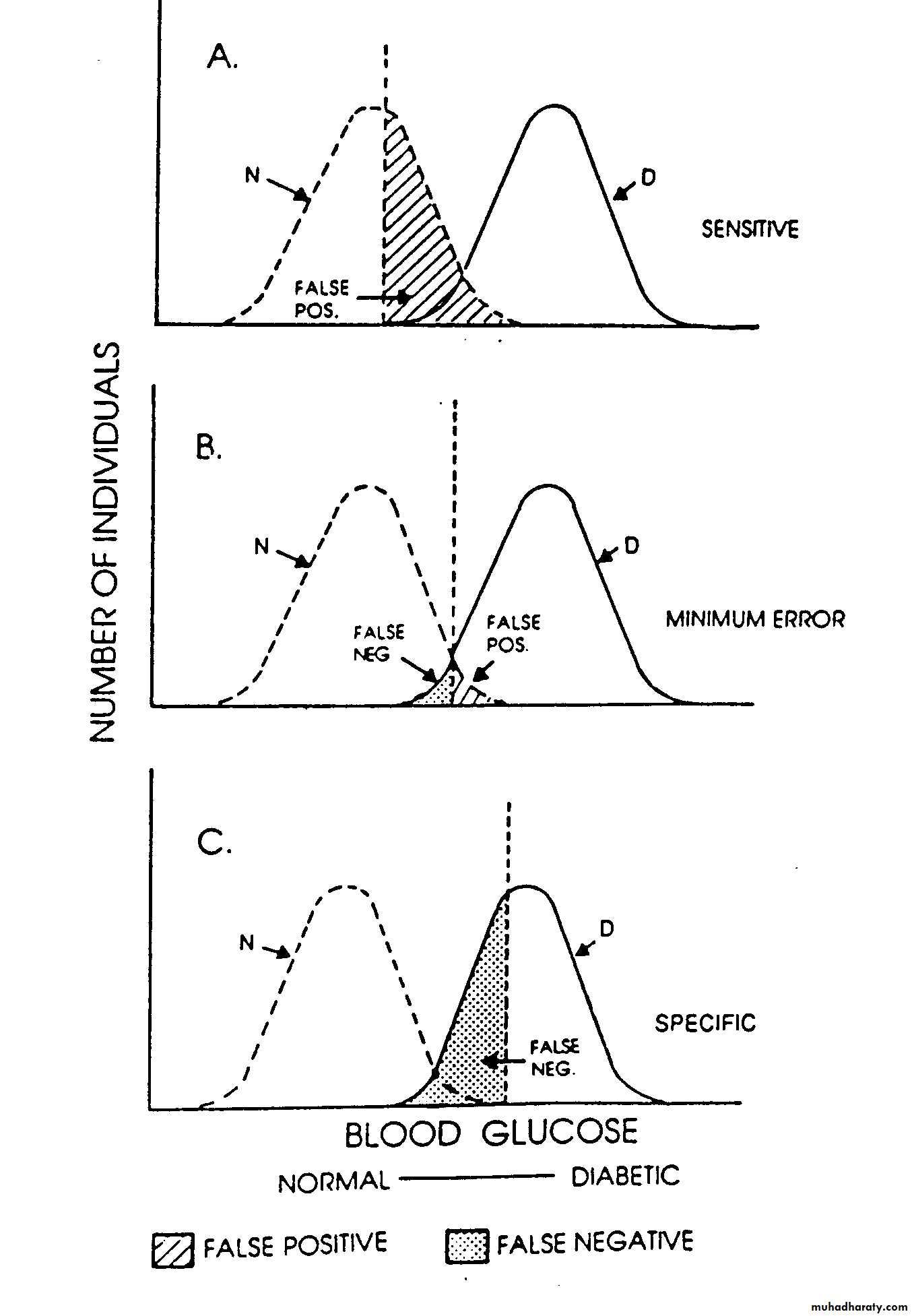 An ideal screening test would be 100% sensitive and 100% specific – that is there would be no false positives and no false negativesIn practice these are usually inversely related