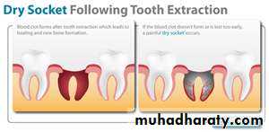 It differ from dry socket in that :1- there is marked pyrexia and pain is very severe.