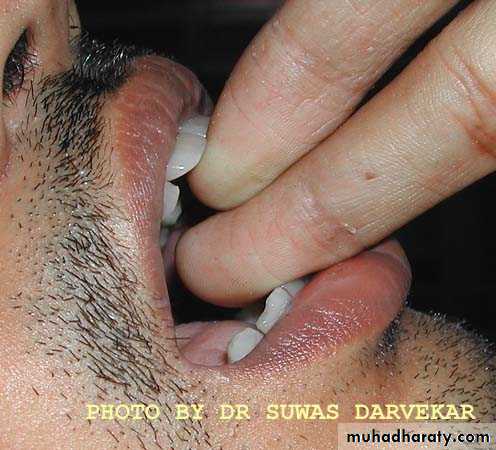 This patient has so much of limitation in opening of mouth that it is difficult to put even 2 fingers in the mouth