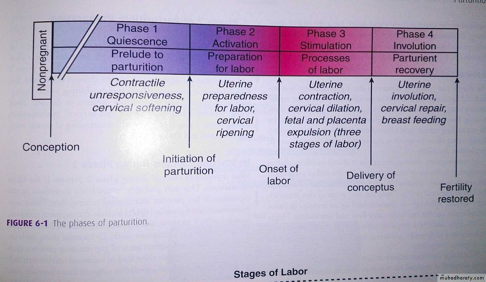 During the first 36 to 38 weeks of gestation, the myometrium is unresponsive; after this prolonged period of quiescence a transitional phase is required.Mechanism responsible for initiating human parturition is still unknown.