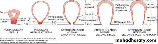 The actively contracting upper segment becomes thicker as labor advances.The lower or passive segment of the uterus and the cervix are relatively inactive compared with the upper segment. It subsequently develops into a much more thinly walled passage for the fetus.