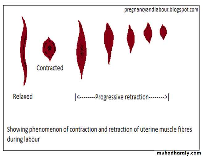 Retraction is a major feature of uterine contractility, it is progressive shortening of the uterine smooth muscle cells of the upper portion of the uterus as labor progresses.