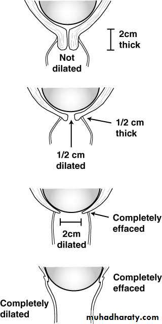 Cervical Dilatation. This measurement is determined by estimating the average diameter of the cervical opening by sweeping the examining finger from the margin of the cervical opening on one side to that of the opposite side.