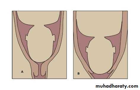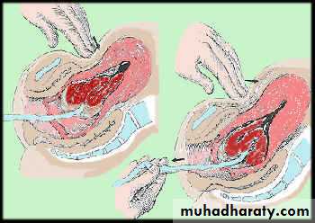 extreme, as in obstructed labor, the ring is very prominent, forming a pathological retraction ring. This is an abnormal condition, also known as Bandl’s ring, This effect on the musculature of the lower segment and on the cervix is an important factor in cervical taken up into the lower segment and cervical dilatation.