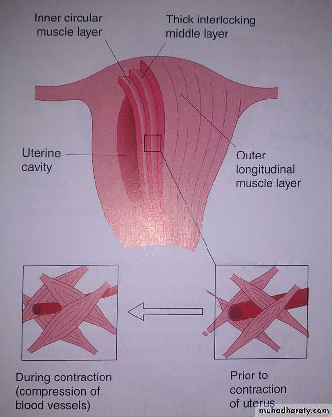 While agents that cause an increase in the intracellular concentration of cyclic adenosine monophosphate (cAMP) and decrease intracellular free calcium like (beta adrenergic compounds and calcium channel blockers ) promote uterine relaxation.The probability of uterine pacemaker is still not proven