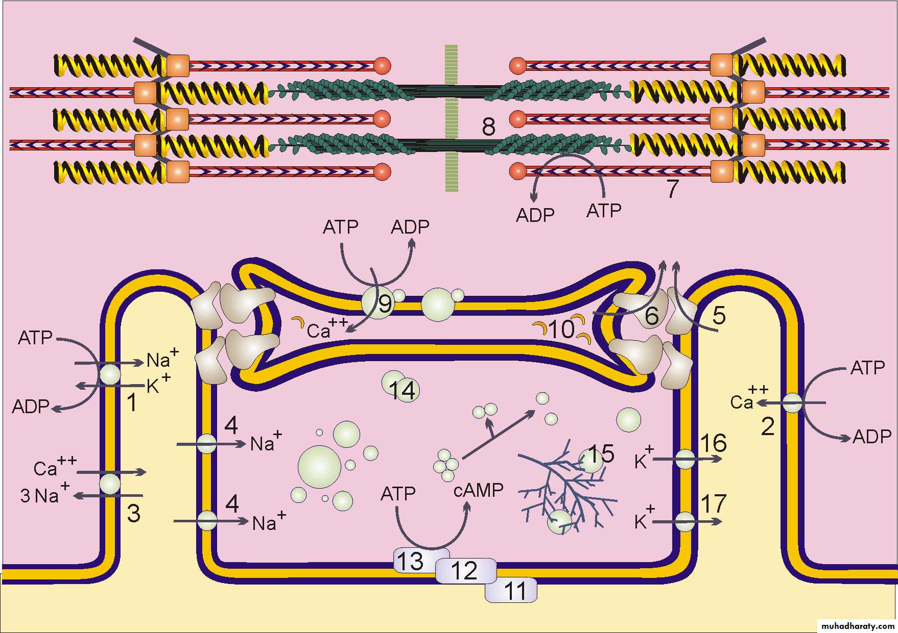 ---the interaction of myosin and actin is essential to muscle contraction. While their separation brings relaxation.---An increase in intracellular free calcium ions result in increase contractility