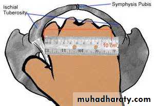 Criteria for assessing pelvic outlet adequacy include intertuberous diameter greater than 8 cm and a sum of the intertuberous diameter and the anteroposterior diameter greater than 15 cm.