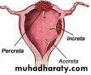 1. Placenta accreta vera— Villi adhere to the superficial myometrium.