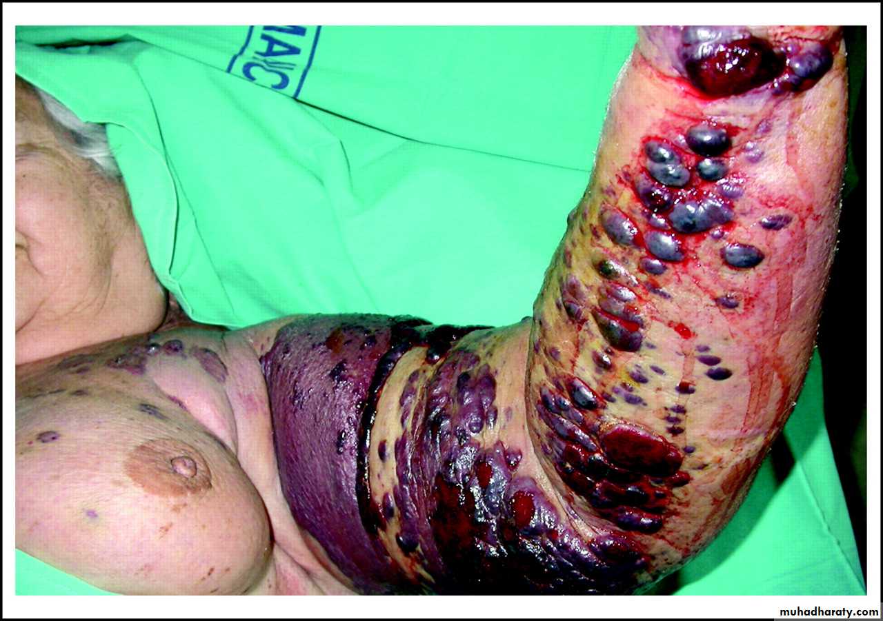 Acute Lymphangitis:Infection caused by Streptococcus pyogenes or Staphylococcus aureus that spreads to the draining lymphatic vessels and lymph nodes (lymphadenitis)