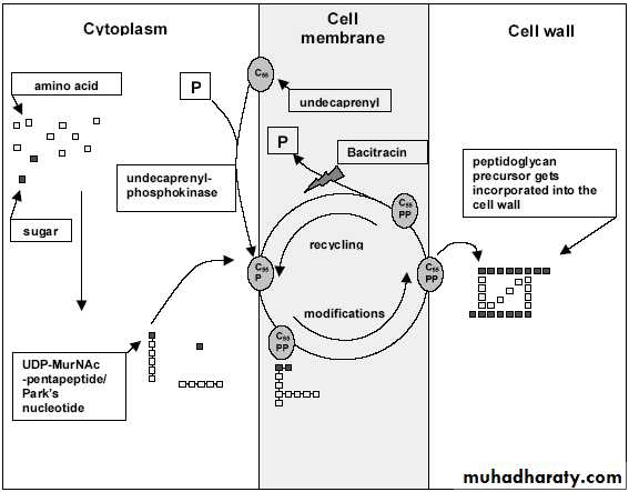 Bacitracin interferes with bacterial cell wall synthesis