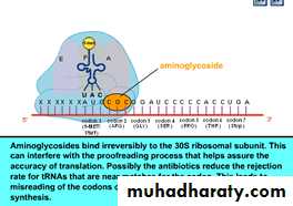 Aminoglycosides like gentamicin "irreversibly" bind to specific 30S-subunit proteins and 16S rRNA.Spectrum