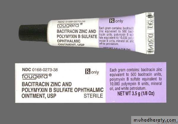 Used combination with other (e.g., bacitracin, neomycin, gramicidin, trimethoprim) for treatment of superficial infections of the eye caused by susceptible bacteria
