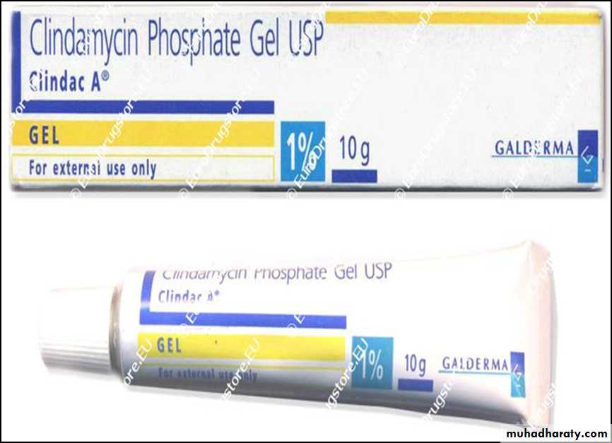 Clindamycin gel most commonly used for treatmentof acne vulgaris.