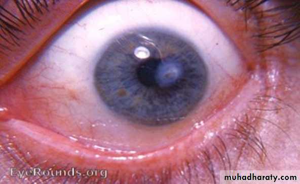 • Accumulation of ciprofloxacin crystals on the surface of the corneal ulcer.
